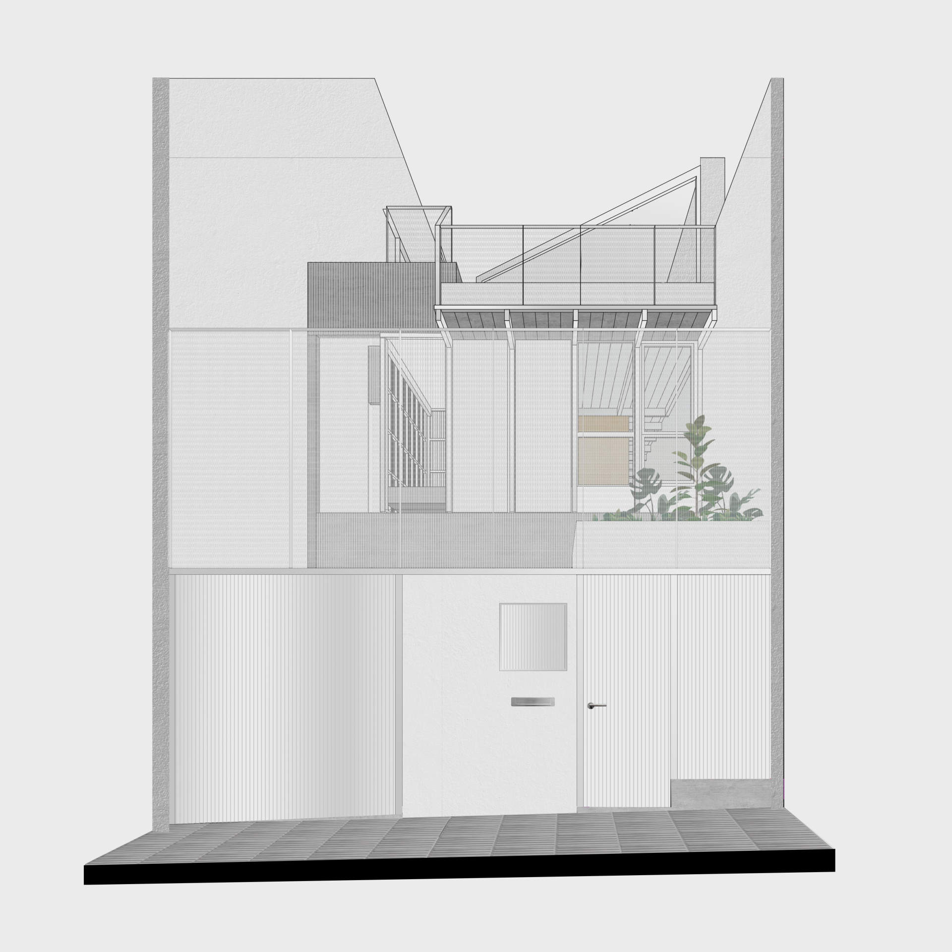 El diseño es una exploración sobre la relación entre lo pesado y lo liviano. La ampliación de esta casa en el barrio de colegiales se debate entre la ligereza de las estructuras metálicas y su inevitable relación con el hormigón como material de apoyo. La continuidad y discontinuidad entre las performatividades estructurales de estos materiales organiza la casa, tanto condicionando sus usos como el carácter de los espacios.